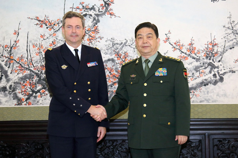 4月7日,国务委员兼国防部长常万全在北京会见来华参加第13轮中法两军防务战略磋商的法国国防部国际关系与战略事务总局副总局长博纳旺蒂尔一行。新华社记者 刘芳 摄