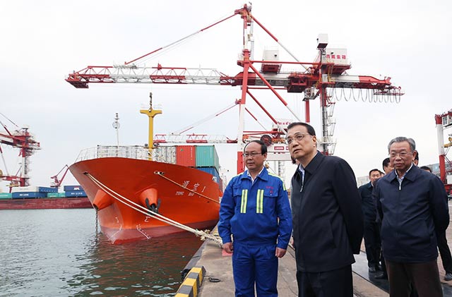 李克强来到威海港,听取港口发展汇报,详细了解今年以来进出口增长情况。他说,中国是贸易大国,将坚持对外开放,希望威海港借鉴国际经验,强化内部管理,提升集疏运能力,并带动中西部地区和小微企业拓展国际市场。