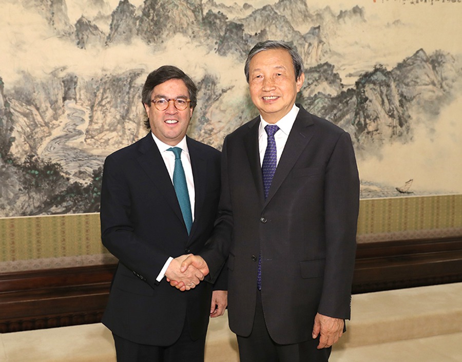 5月16日,国务院副总理马凯在北京中南海紫光阁会见前来出席“一带一路”国际合作高峰论坛的美洲开发银行行长莫雷诺。新华社记者 马占成 摄