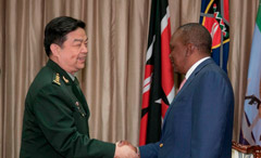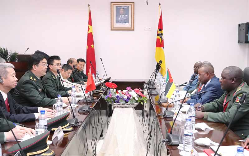 7月11日,在莫桑比克首都马普托,中国国务委员兼国防部长常万全(左二)与莫桑比克国防部长姆图穆克(右二)举行会谈。新华社发(李晓伟 摄)