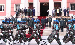 常万全首先转达了习近平总书记对本扬总书记的亲切问候和良好祝愿。常万全说,中国军队将按照两党两国领导人共识,同老挝军队一道,按照“长期稳定、睦邻友好、彼此信赖、全面合作”的方针和“好邻居、好朋友、好同志、好伙伴”的精神,加强交往,深化合作,为打造中老命运共同体,做出积极贡献。中国军队将继续为老挝军队建设提供力所能及的支持和帮助。