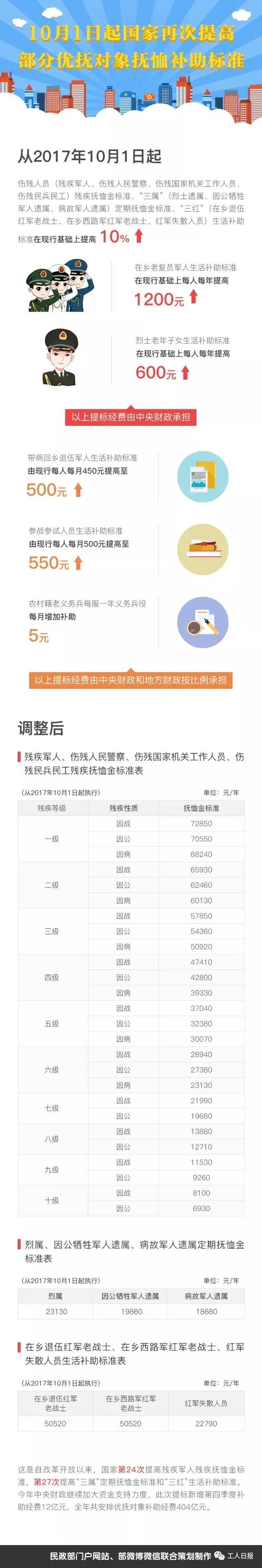 民政部、财政部日前发出通知,再次提高部分优抚对象等人员抚恤和生活补助标准。