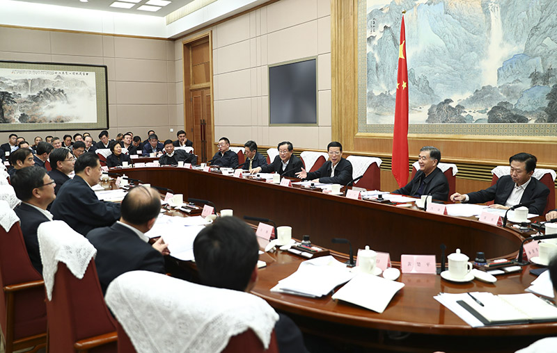 11月2日,国务院南水北调工程建设委员会第八次全体会议在北京召开,国务院副总理、国务院南水北调工程建设委员会主任张高丽主持会议并讲话。中共中央政治局常委、国务院副总理、国务院南水北调工程建设委员会副主任汪洋出席会议。 新华社记者 谢环驰 摄