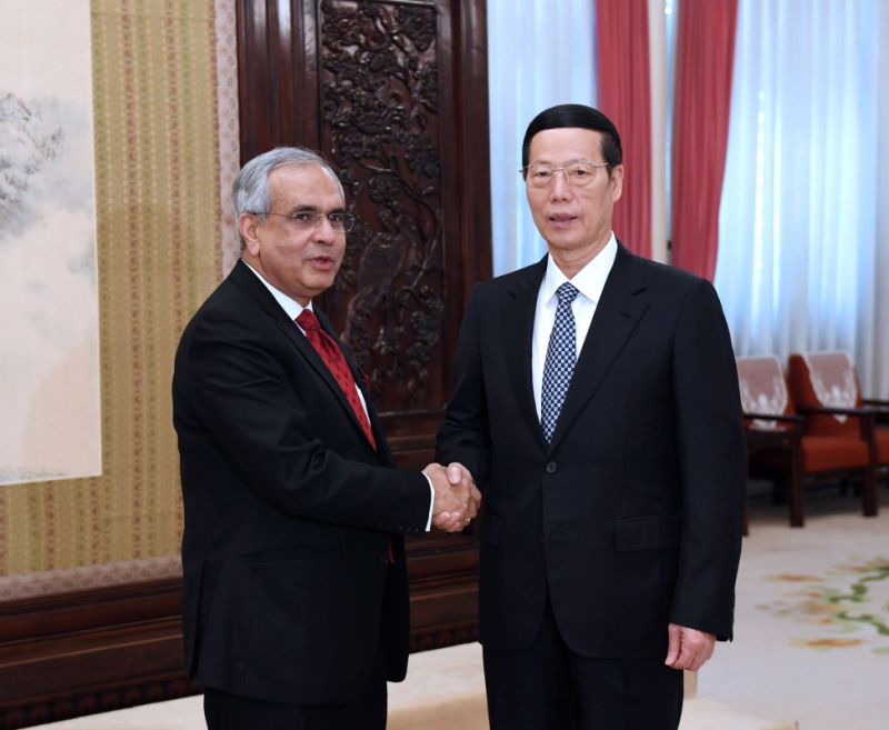 12月5日,国务院副总理张高丽在北京会见前来出席第三届中国国务院发展研究中心和印度国家转型委员会对话会的印度国家转型委员会副主席库玛尔。新华社记者 饶爱民 摄