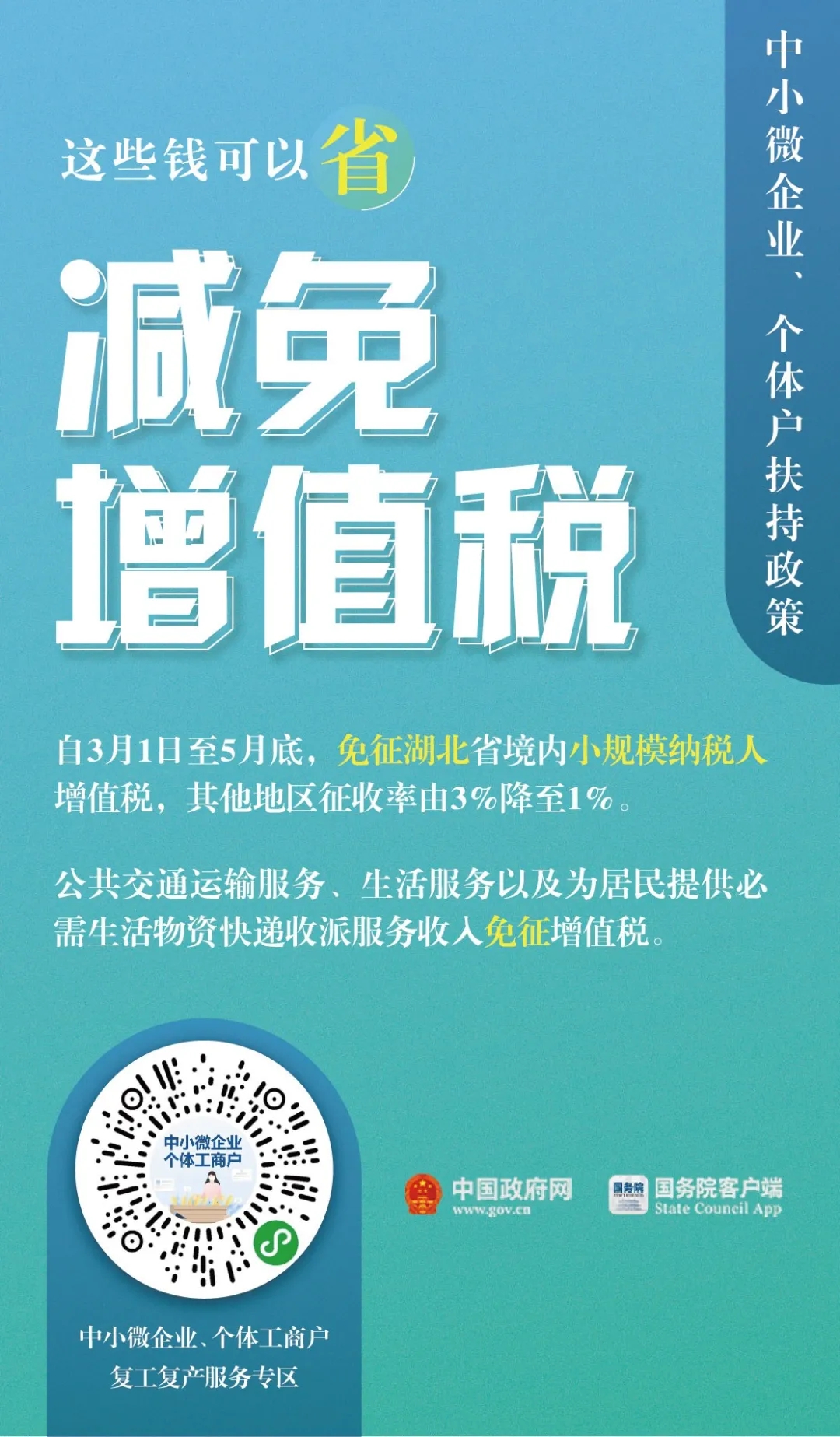 国务院常务会多次部署减轻疫情对企业特别是中小微企业、个体工商户的影响,多部门陆续出台一系列扶持政策。哪些钱可以免?哪些钱可以缓?哪些事儿可以简?为提高复工复产服务便利度,使各项惠企政策易于知晓,国务院客户端上线中小微企业、个体工商户复工复产服务专区,全力保障小微企业和个体工商户有序复工复产,渡过难关。