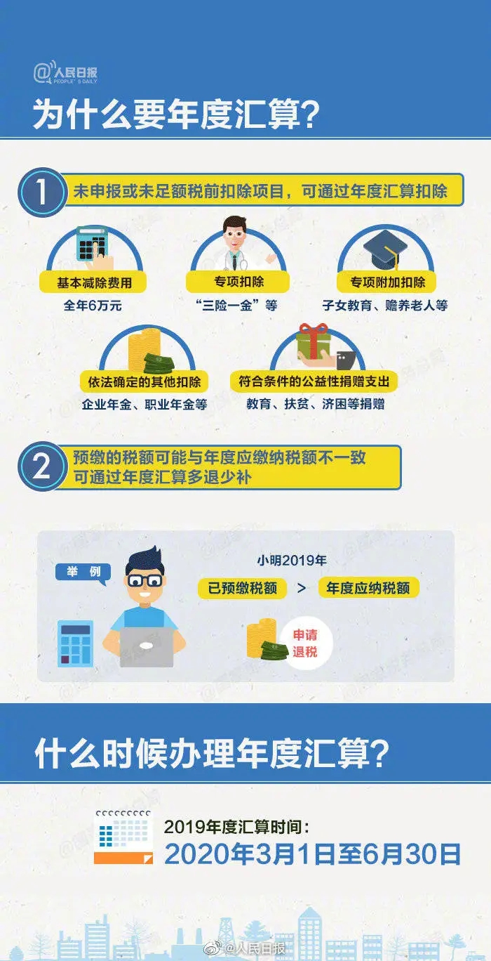 提醒!2019年个税年度汇算6月底截止 人民日报微博 2020-06-12 2019年度个税综合所得年度汇算清缴将于6月30日截止。少则几十元,多则上千元,有的人退税已经入账;有的人则需要补缴税款。如何使用个税APP退税?不如实申报会有什么后果?一起来看↓↓↓