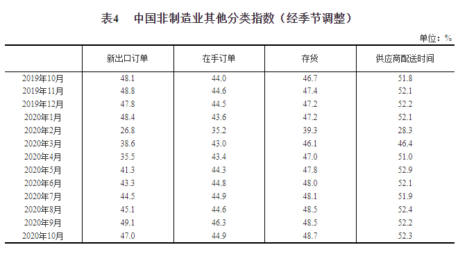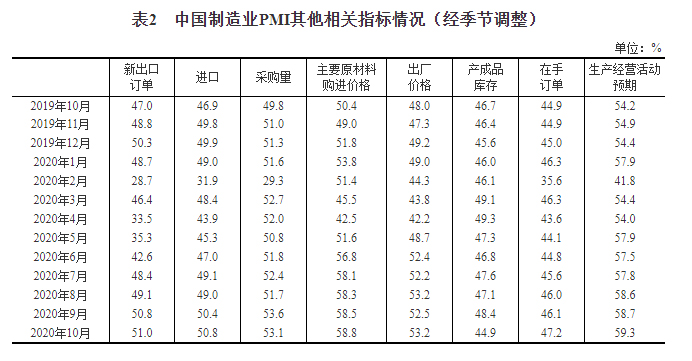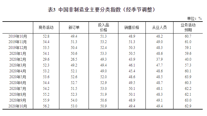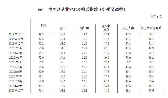 2020年10月中国采购经理指数运行情况