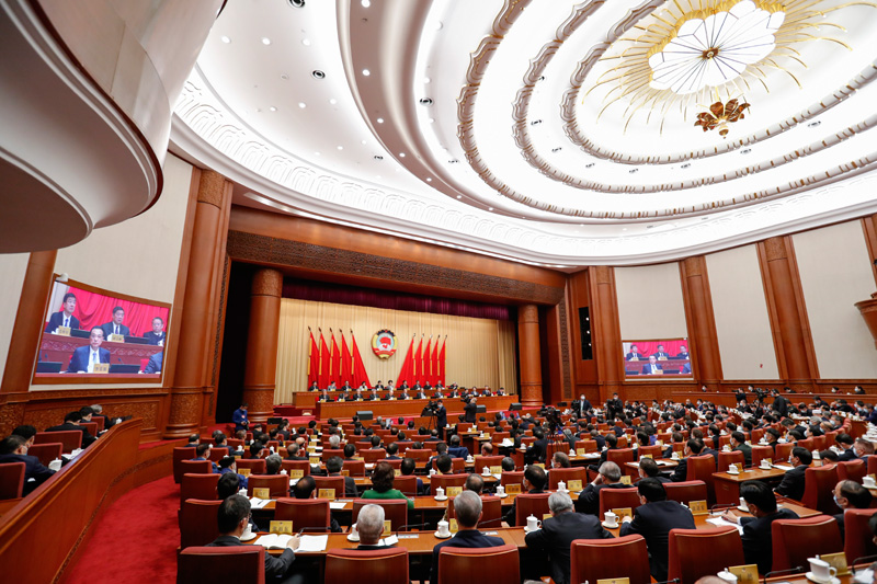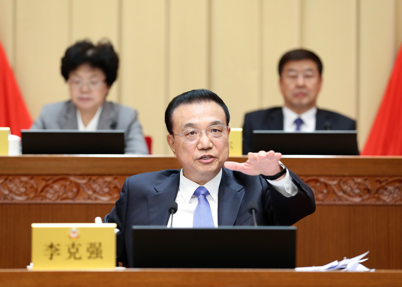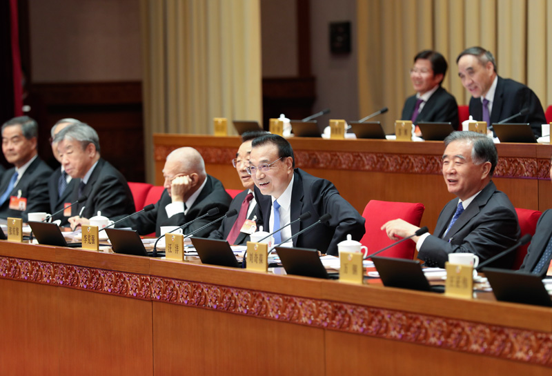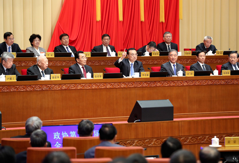 李克强在全国政协十三届常委会第十四次会议开幕会上作报告 汪洋主持