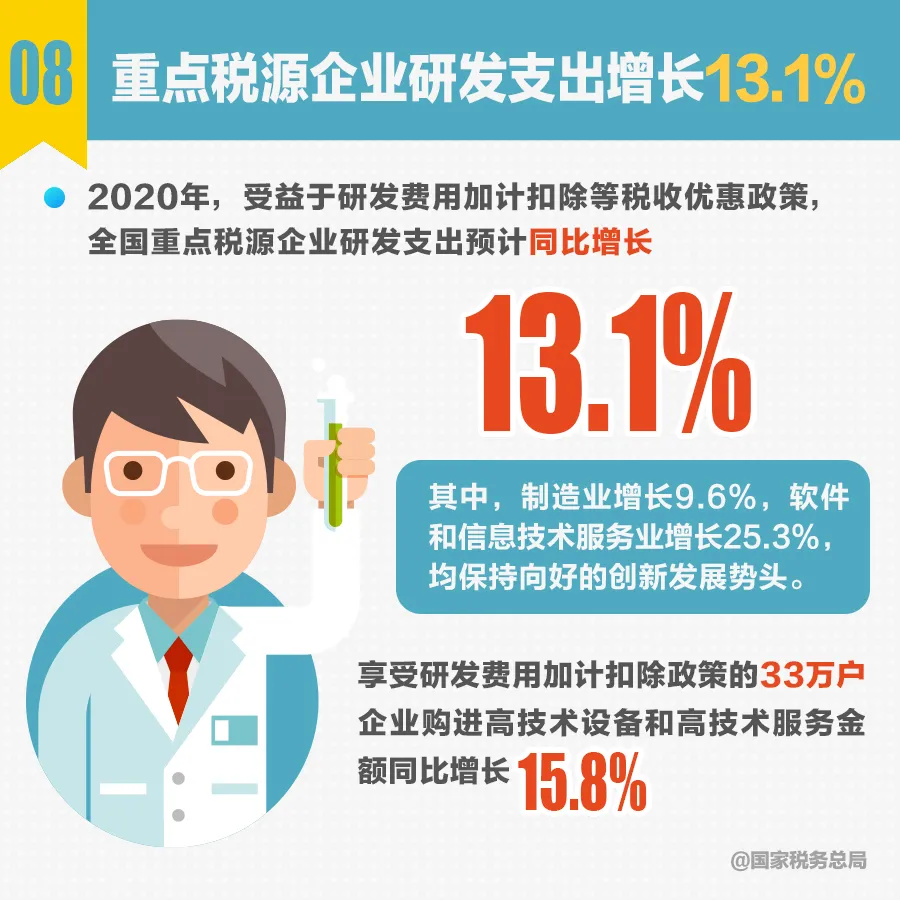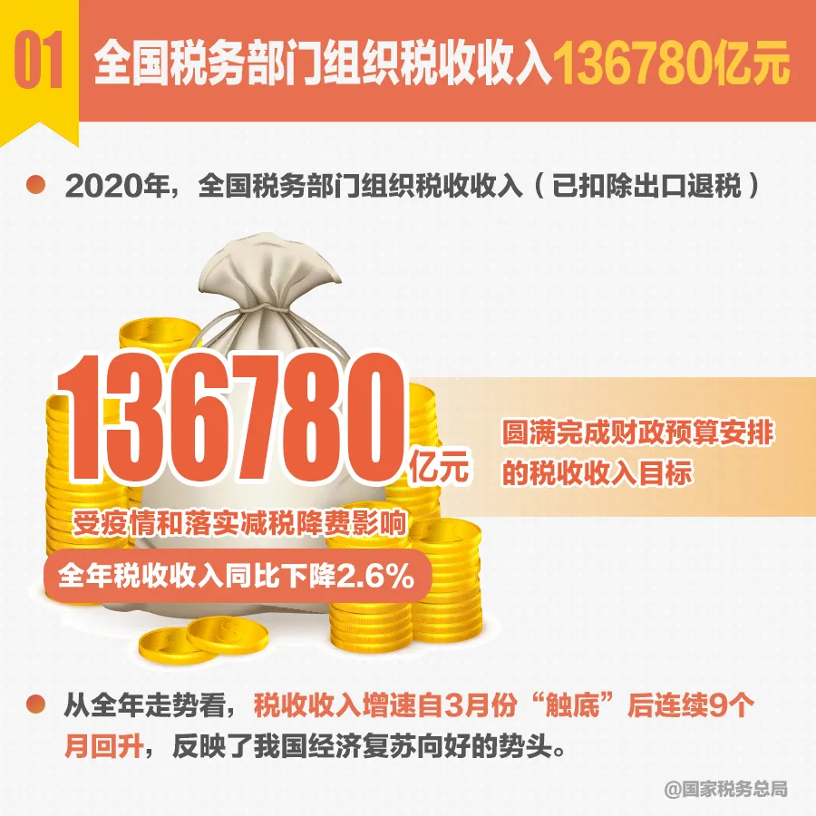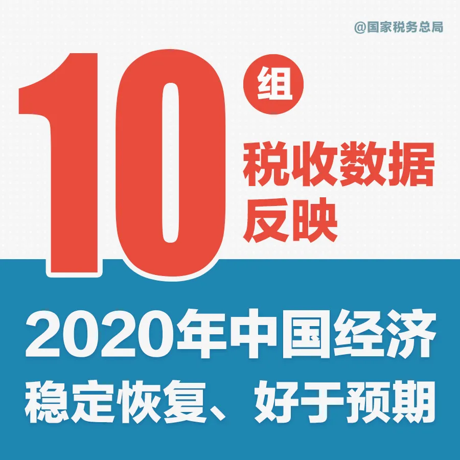 速览!十组税收数据看2020年中国经济发展亮点 国家税务总局微信 2021-01-20 1月20日,国家税务总局召开新闻发布会。会上发布的十组税收数据,反映2020年中国经济稳定恢复、好于预期。戳图了解↓国家税务总局税收宣传中心、中国税务报社 联合制作