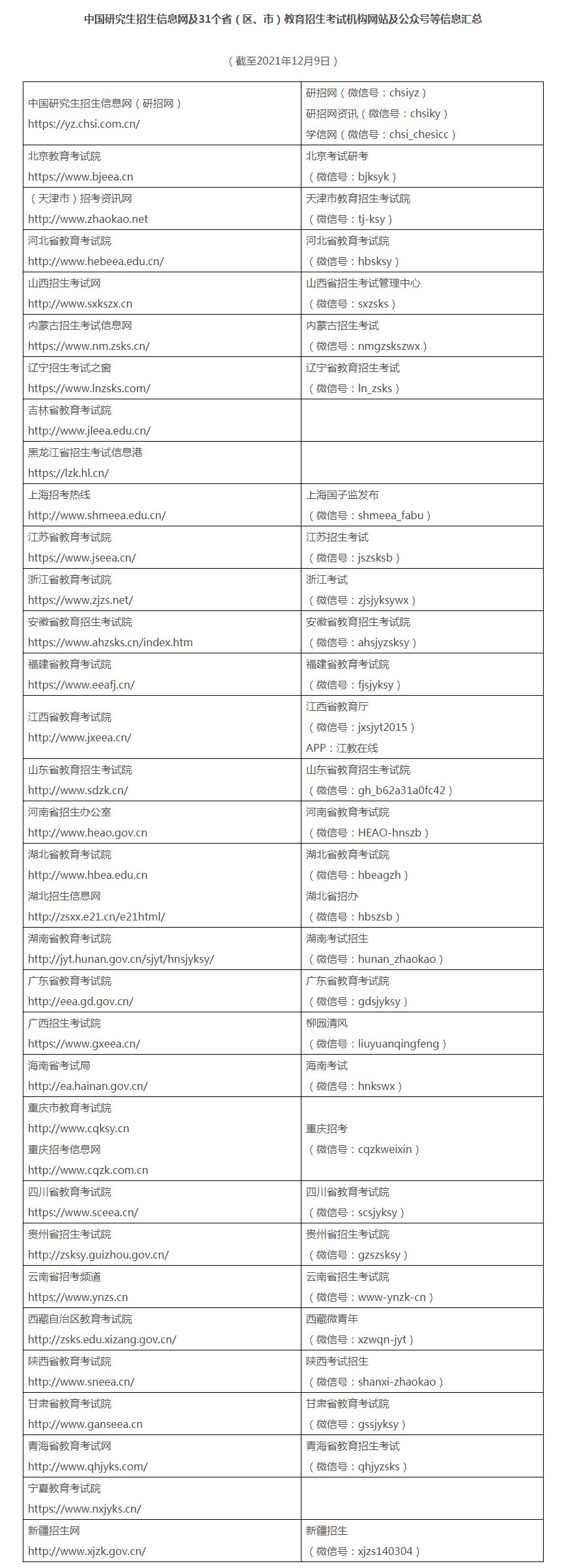 为方便考生尽早了解报考点考试、防疫相关信息和要求,提前做好相关准备,“研招网”将原定于12月18日开通的考生下载打印《准考证》服务提前至12月10日,下载打印方式不变(考生凭用户名和密码登录“研招网”下载,网址:https://yz.chsi.com.cn)。请考生下载《准考证》前认真阅读报考点所在地省(区、市)考生防疫有关要求,并认真关注《准考证》上“省级招生考试机构说明”“报考点说明”“招生单位说明”等相关信息。