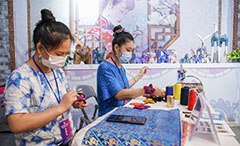 既有黑科技,也有文艺范。典雅的景泰蓝、复古的团扇、精致的漆器、优美的版画……“双创周”期间,一组以丝路文化为背景、敦煌飞天为题材的“西遇敦煌”文创作品让参观者眼前一亮。