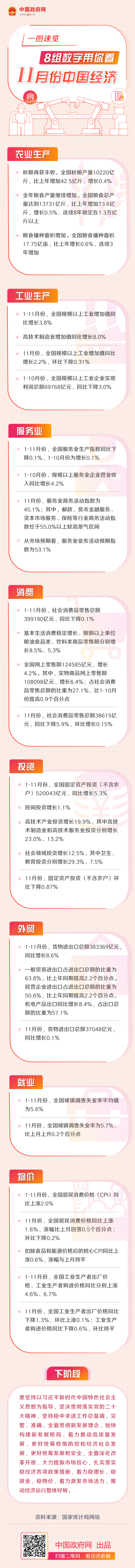 一图速览:8组数字带你看11月份中国经济