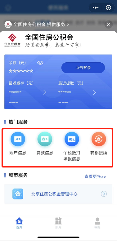 就可获得【公积金】相关常用服务