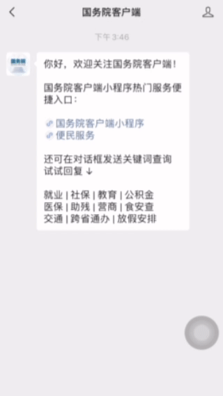 关注“国务院客户端”服务号
