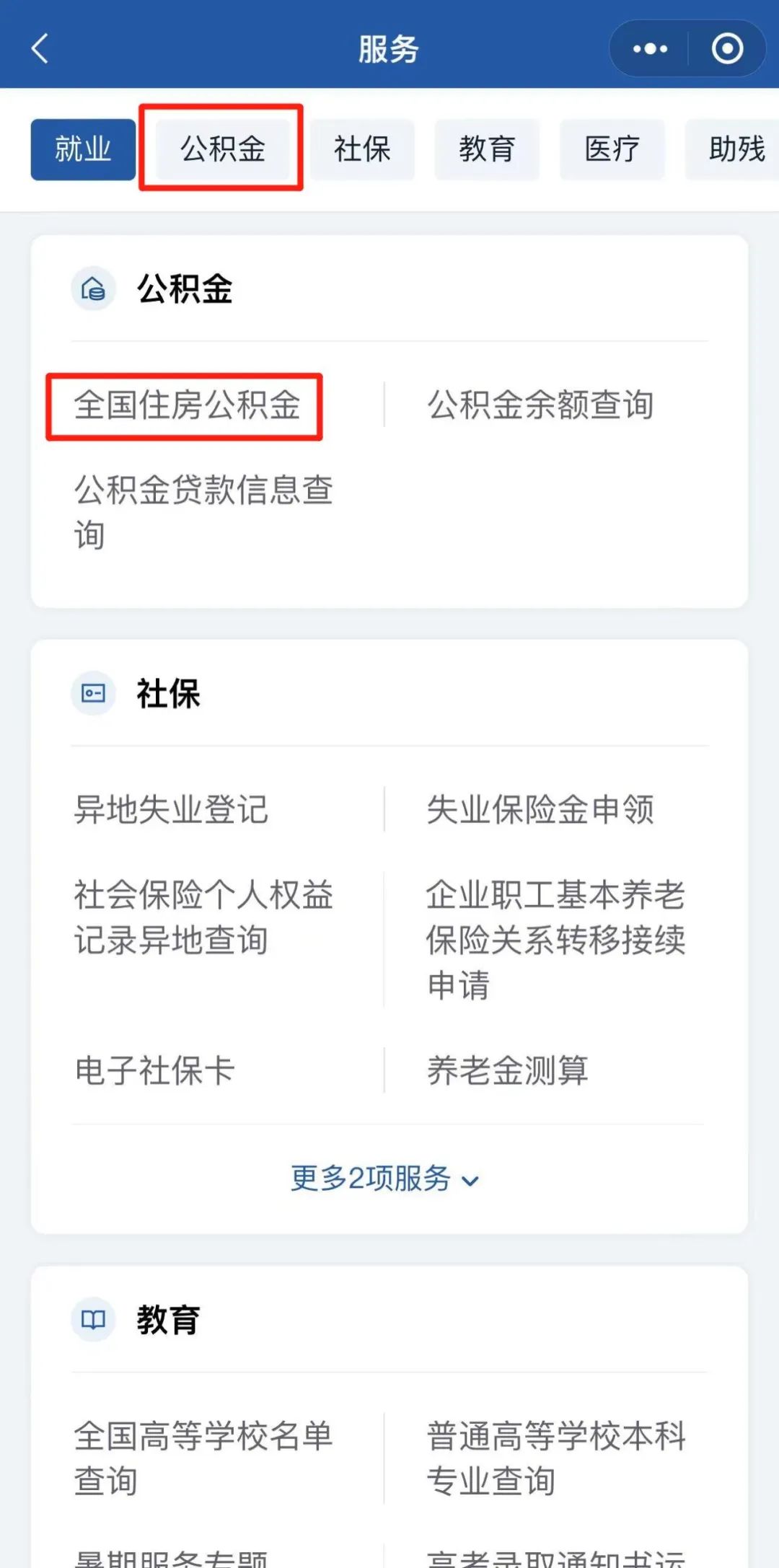 点击【全国住房公积金】服务