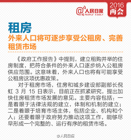 买房、找工作、户口、收入,这些话题,奋斗打拼的你是不是很关心?快看看2016两会传递的最新信号:①买房:一线严格限购、首付贷叫停;②租房:外来人口将可逐步享公租房;③就业:多渠道就业;精准帮扶,一人一策……都是和你关系密切的事,学习!