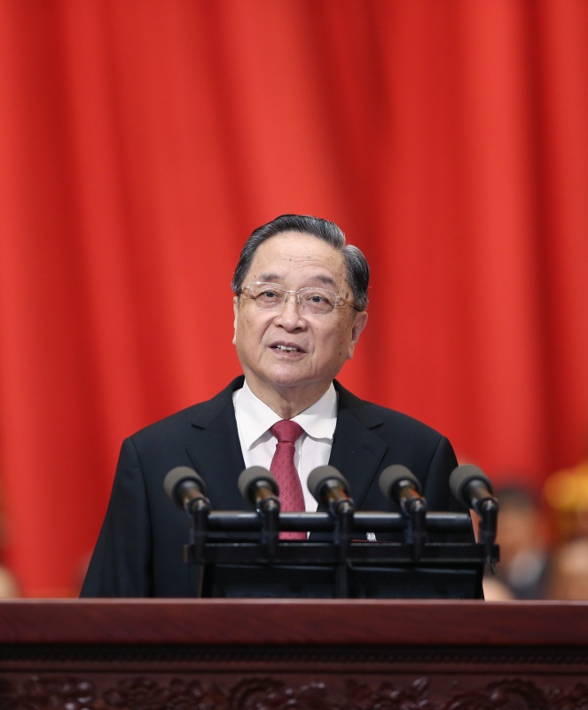 俞正声代表政协第十二届全国委员会常务委员会作工作报告。