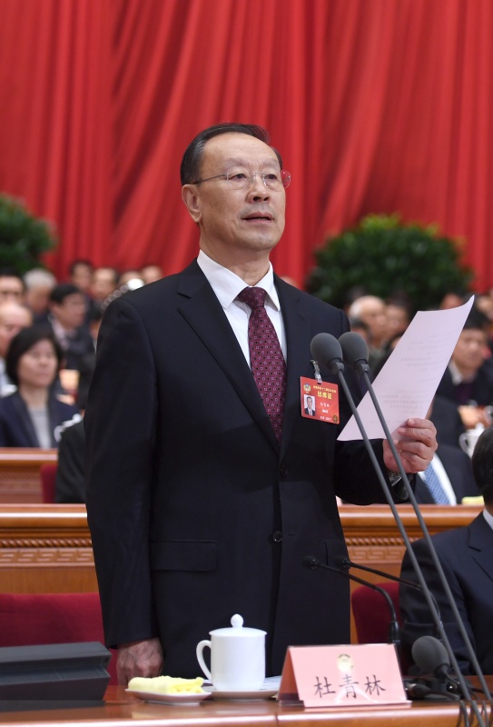 3月3日,中国人民政治协商会议第十二届全国委员会第五次会议在北京人民大会堂开幕。杜青林主持开幕会。新华社记者 李学仁 摄