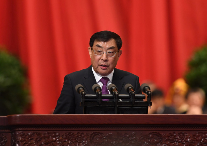 在主席台就座的领导同志还有:马凯、王沪宁、刘延东、刘奇葆、许其亮、孙春兰、李建国、李源潮、汪洋、张春贤、范长龙、孟建柱、赵乐际、胡春华、栗战书、郭金龙、韩正、赵洪祝、杨晶、王胜俊、陈昌智、严隽琪、王晨、沈跃跃、吉炳轩、张平、向巴平措、艾力更·依明巴海、万鄂湘、张宝文、陈竺、常万全、杨洁篪、郭声琨、王勇、周强、曹建明等。