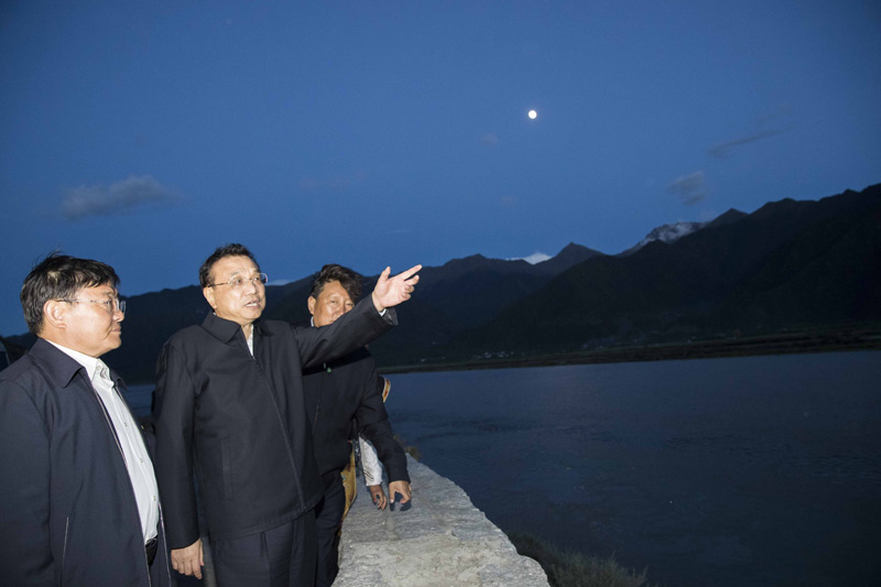 暮色中李克强来到雅鲁藏布江和尼洋河交汇处,考察水资源和生态保护,他说,青藏高原是中国和亚洲的“水塔”,要切实加强生态建设,为全国可持续发展提供支撑。