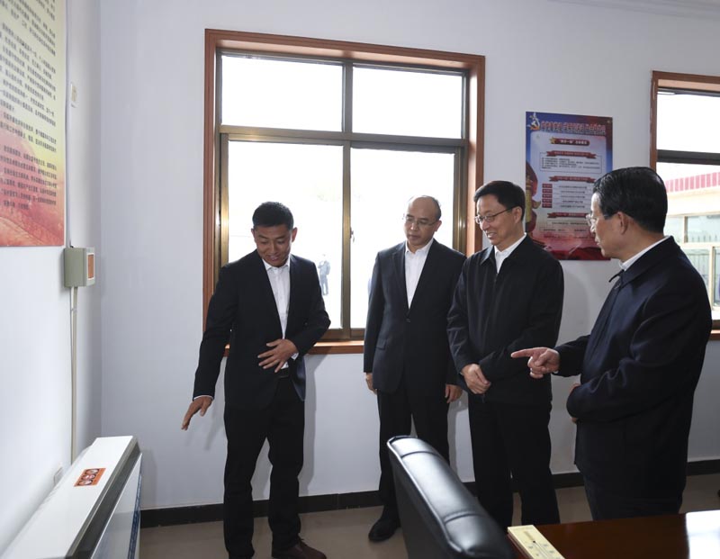 10月17日,中共中央政治局常委、国务院副总理韩正在河北省石家庄市调研并主持召开京津冀及周边地区冬季清洁取暖工作座谈会。这是韩正在正定镇新村考察“煤改电”情况。新华社记者 燕雁 摄