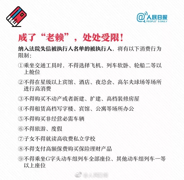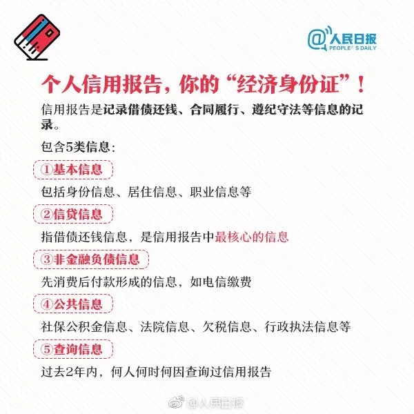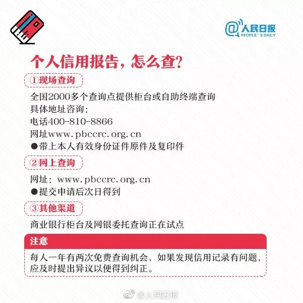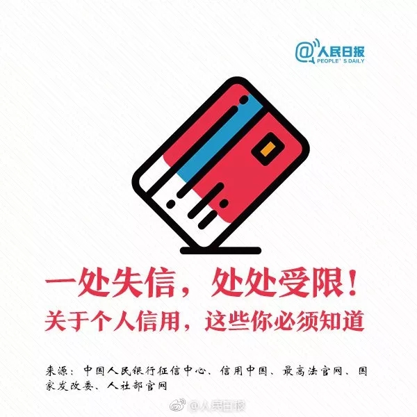 一处失信,处处受限!关于个人信用,这些你必须知道 人民日报微博 2018-11-23 你知道吗?个人信用出现不良记录,将可能影响信用卡办理、买房贷款!哪里可查看个人信用报告?在不同领域失信,将有哪些严重后果?个人信用记录维护攻略↓↓收藏学习!
