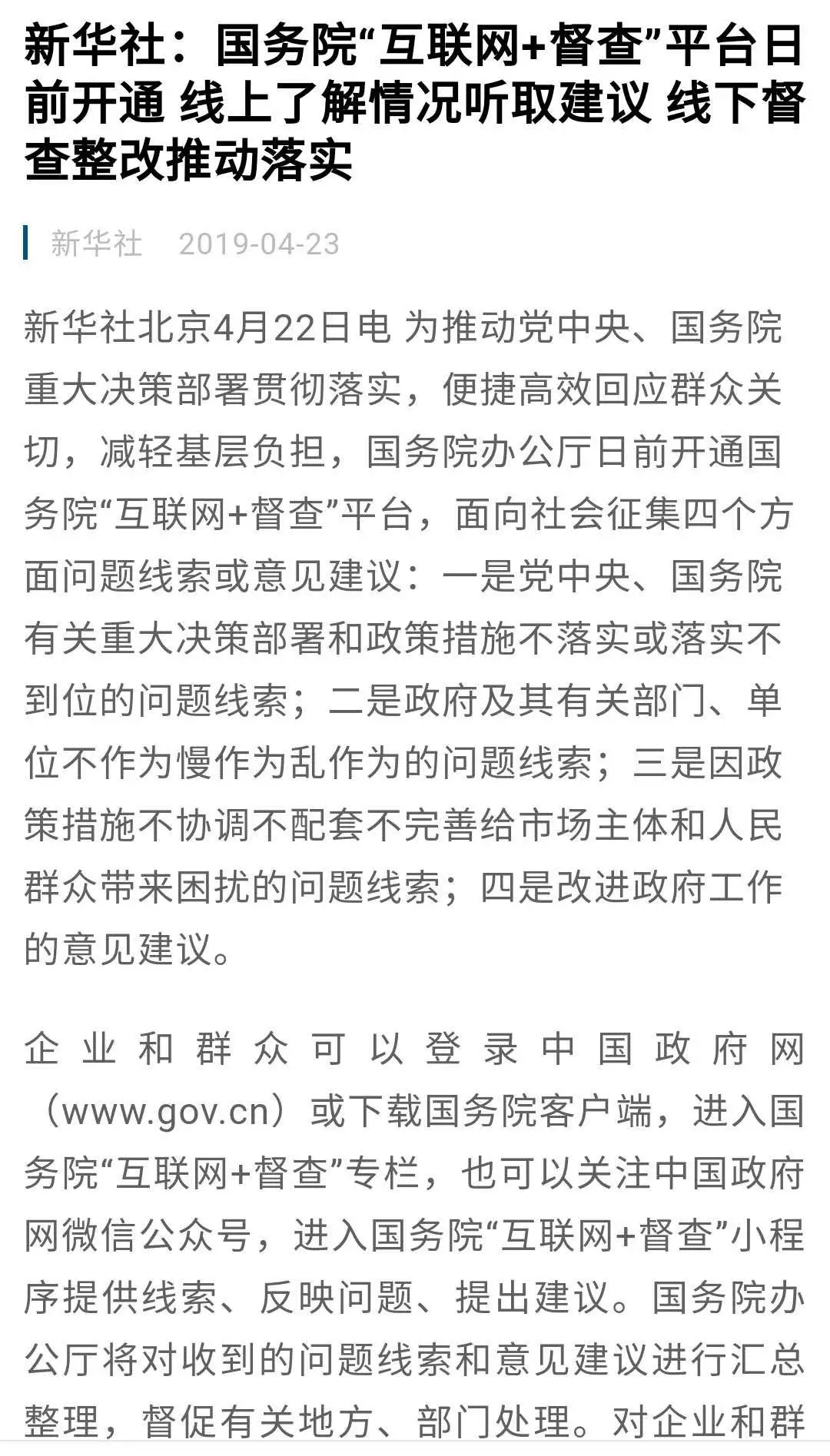 提醒:国务院办公厅将对收到的问题线索和意见建议进行汇总整理,督促有关地方、部门处理。对企业和群众反映强烈、带有普遍性的重要问题线索,国务院办公厅督查室将直接派员督查。经查证属实、较为典型的问题,将予以公开曝光、严肃处理。
