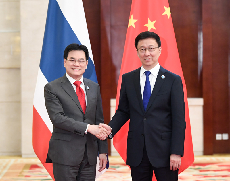 朱林表示,祝贺中方经济发展和脱贫事业取得巨大成就。泰方高度评价“一带一路”的世界贡献和对地区发展的引领作用,作为东盟轮值主席国,泰方将积极推动东盟互联互通总体规划与“一带一路”倡议深入对接,推动东盟-中国关系、东亚合作取得更大发展。