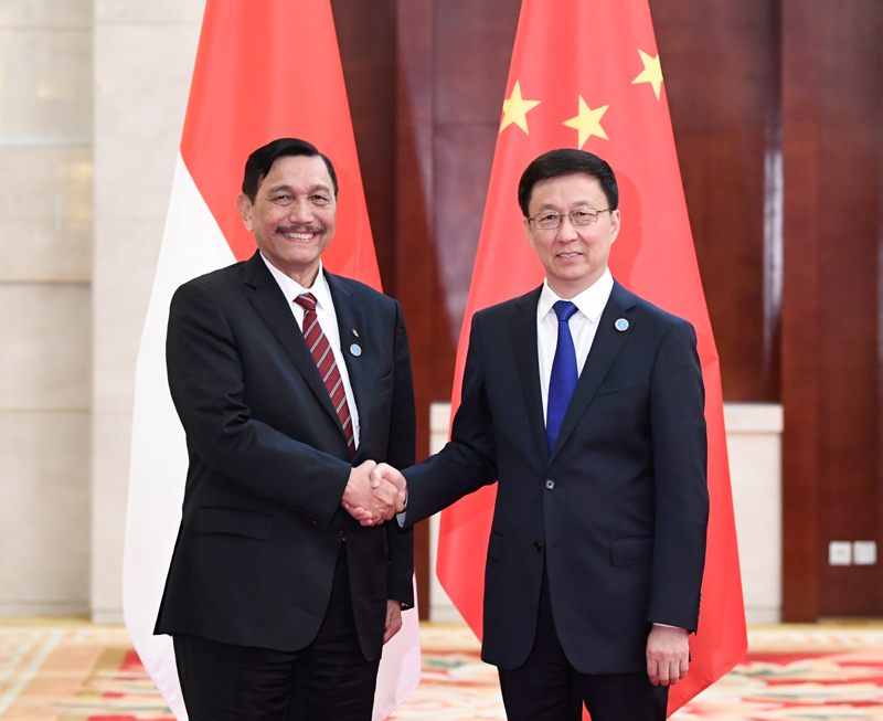 在会见卢胡特时,韩正表示,中国和印尼同为亚洲发展中大国、新兴经济体,合作潜力巨大。两国元首就深化发展战略对接和共建“一带一路”达成重要共识,为全面推进双边合作规划了蓝图。双方要以明年建交70周年为契机,积极推进共建“一带一路”,深化各领域务实合作,推动两国全面战略伙伴关系取得更大发展。
