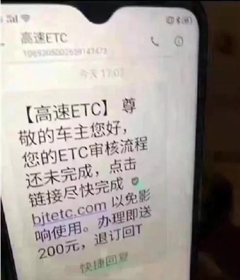 最近不少办了ETC的车主接收到了号称高速ETC的短信,短信上称ETC审核流程未完成,如需完成需点击相关网页链接。