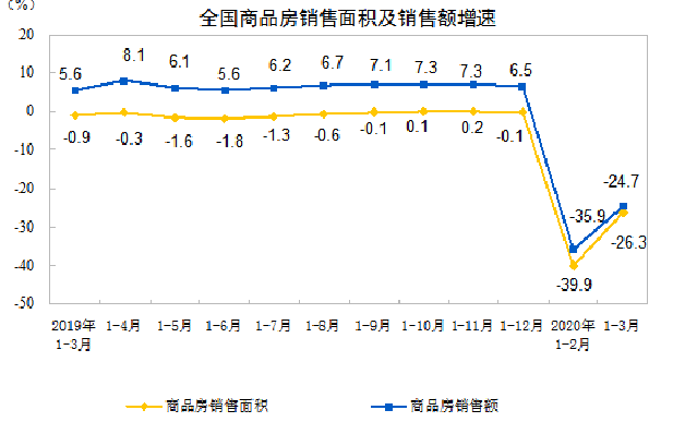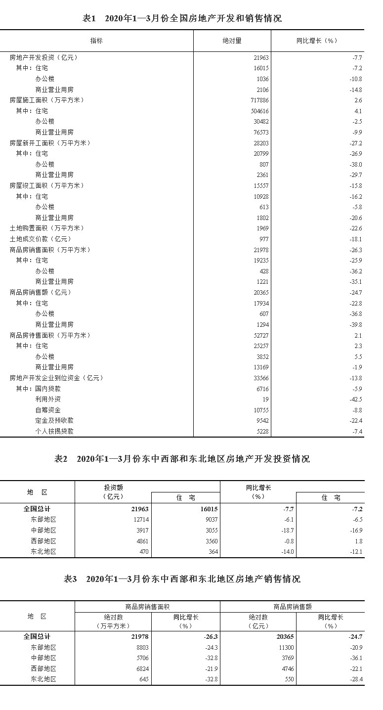 2020年1—3月份全国房地产开发投资和销售情况