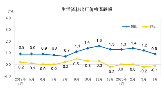 2020年4月份工业生产者出厂价格同比下降3.1%