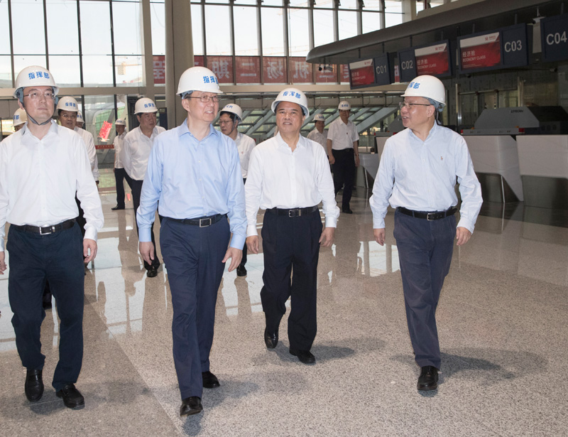 5月30日至31日,中共中央政治局常委、国务院副总理韩正在海南调研。这是5月30日,韩正在海口美兰国际机场二期扩建项目施工现场,了解规划建设和投产运营准备情况。新华社记者 王晔 摄