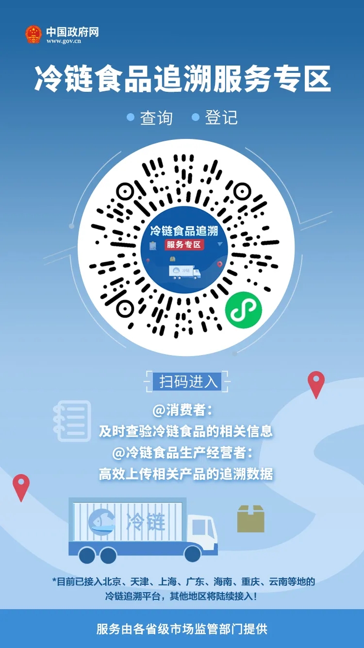 冷链食品追溯服务专区来了!个人企业都能用 国务院客户端 2020-12-26 近期,多地在进口冷链食品及其外包装检出核酸阳性。国务院客户端小程序上线冷链食品追溯服务专区,包含省级冷链食品追溯服务入口,企业和个人扫码即用↓