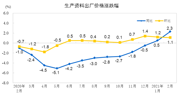 2021年2月份工业生产者出厂价格同比上涨1.7% 环比上涨0.8%