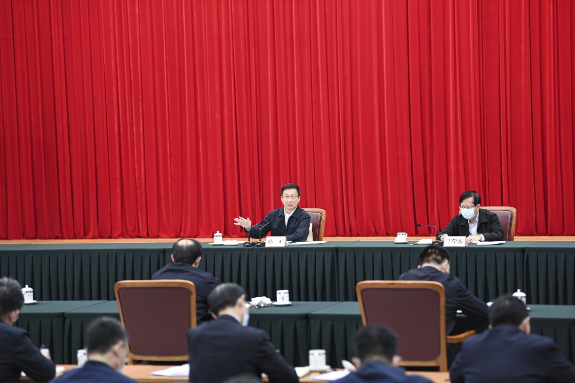 3月16日,中共中央政治局常委、国务院副总理韩正在国家发展改革委召开座谈会。新华社记者 殷博古 摄