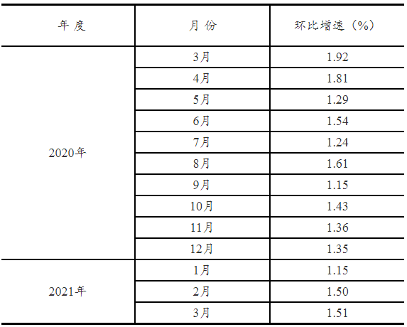 根据季节调整模型自动修正程序,对2020年3月份以来的固定资产投资(不含农户)环比增速进行修订。修订结果及2021年3月份环比数据如下: