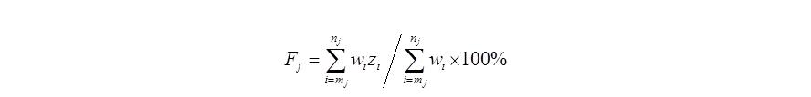 其中,为的权数,为第个分类指数值,为第个类别中第1个基础指标在整个指标体系中的序数,为第个类别中最后1个基础指标在整个指标体系中的序数。