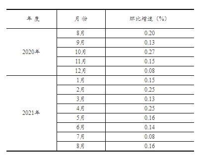 根据季节调整模型自动修正程序,对2020年8月份以来的固定资产投资(不含农户)环比增速进行修订。修订结果及2021年8月份环比数据如下: