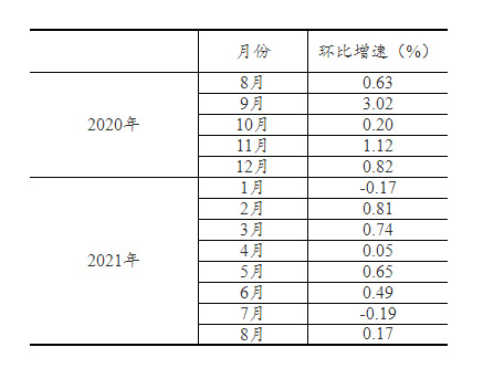 根据季节调整模型自动修正的结果,对2020年8月份以来的社会消费品零售总额环比增速进行修订。修订结果及2021年8月份环比数据如下: