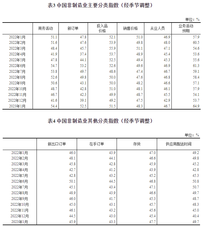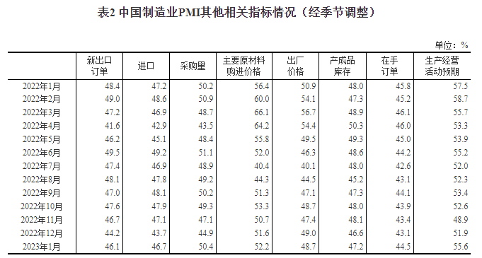 2023年1月中国采购经理指数运行情况
